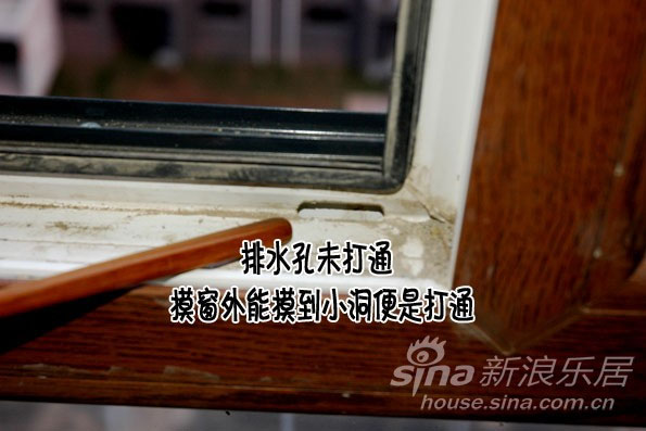 6. f.窗子排水孔是否打通了。未打通积水会流入型材里。